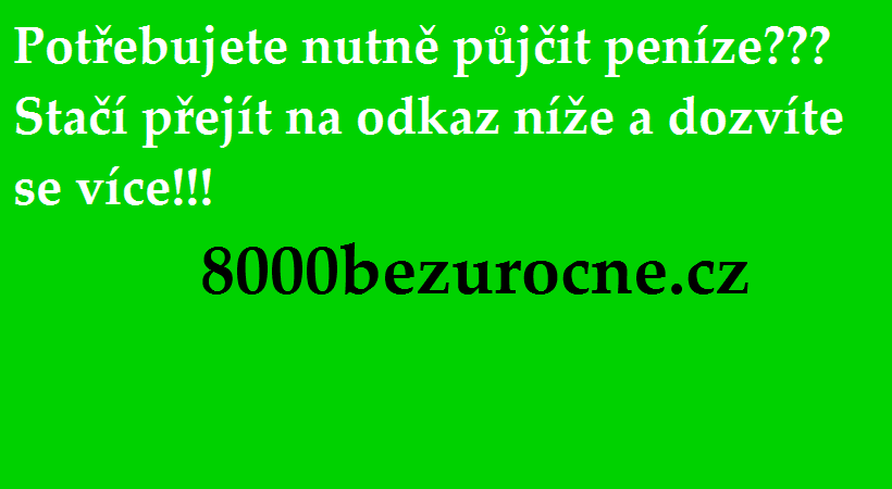 Potřebujete nutně půjčit peníze???? U nás si můžete půjčit až 8000 a to : Bezúročně! Neváhejte a přejděte na odkaz: 8000bezurocne.cz