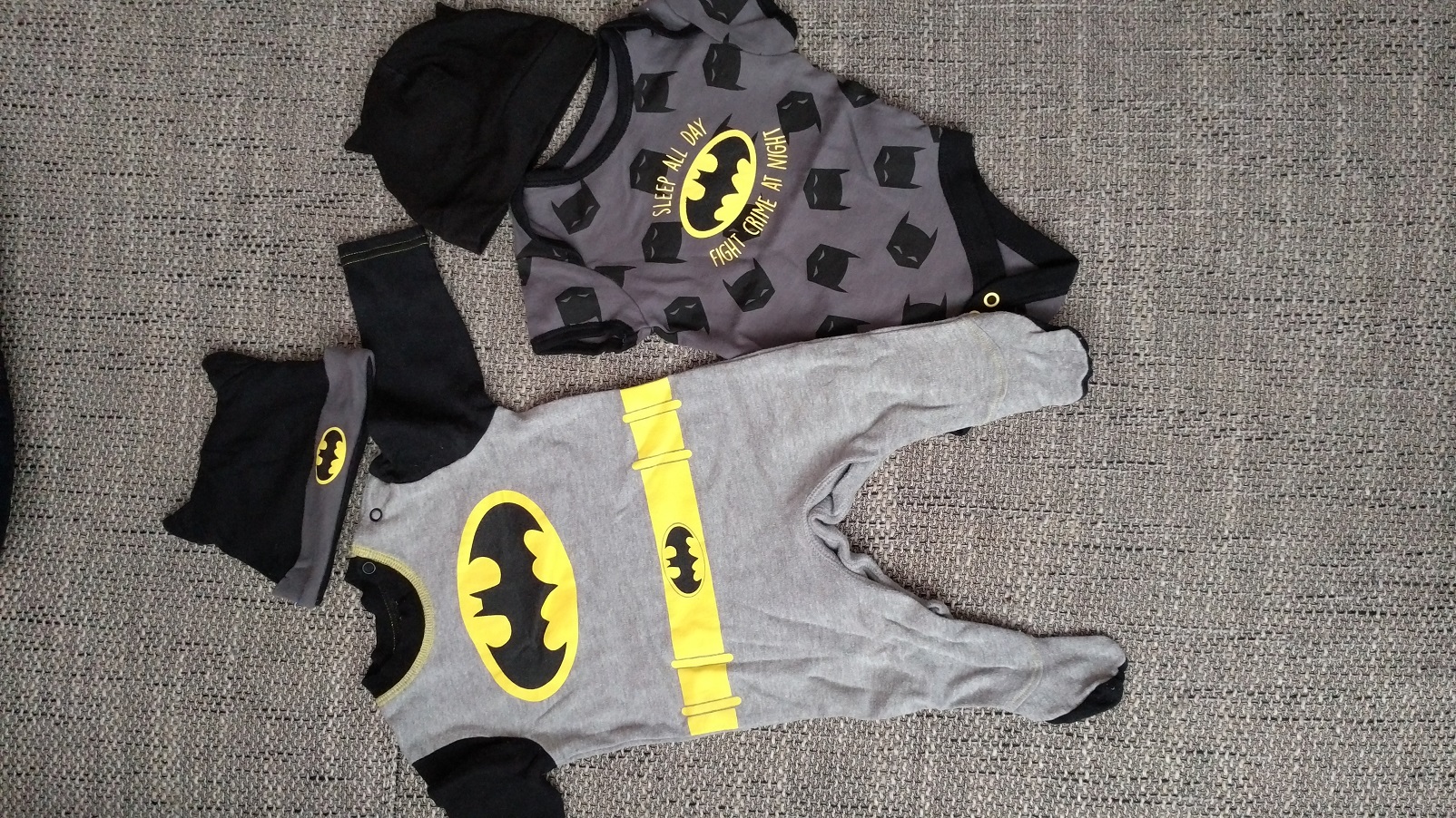 BATMAN sada 2 čepičky, overal dlouhý rukáv a body krátký rukáv.