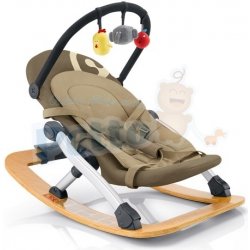 Se svým zvláštním designem a zajímavou směsí materiálů z tvarovaného dřeva a hliníku se houpací lehátko výborně hodí do moderně zařízených bytů. Také co se týče funkčnosti a vybavení mu nic nechybí. Má 4 nastavitelné polohy podle druhu aktivity dítěte, pokud není nastaveno v poloze houpací.
