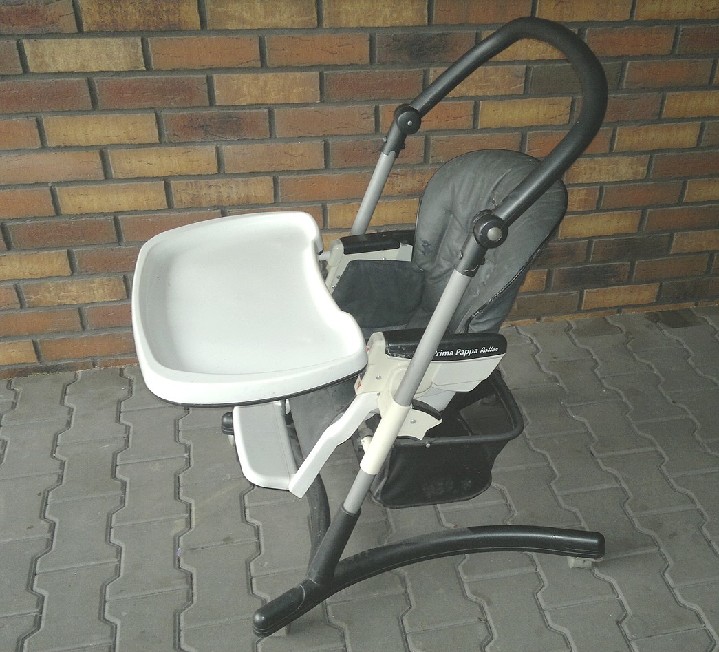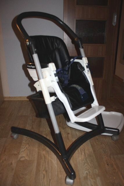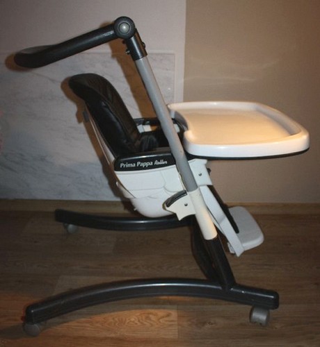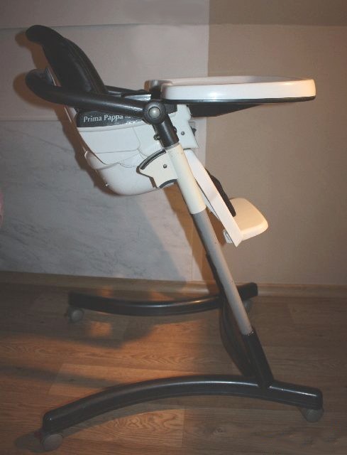 Prodám dětskou, výškově stavitelnou židli, velmi pevnou a stabilní. Zn: Peg Perego Prima Pappa Roller, Nastavit lze i polohu sed - leh. Pětibodové bezpečnostní pásy. 4 kolečka (2 brzděná), košík na věci pod sedačkou. Polohovatelné madlo, odnímatelný pultík, koš lze také oddělat. Lze složit, resp. odpojit o podvozku. Polstrování: omyvatelná ekokůže. Použitá, ale dokonale funkční. Barva černo-bílo-stříbrná.