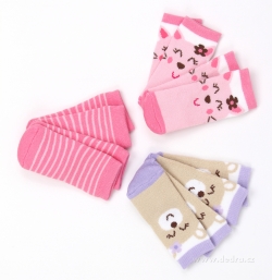 6párů dětských ponožek růžovo-fialové (2 páry odkaždého vzoru) Materiál 81% bavlna 17%nylon , 2% spadex