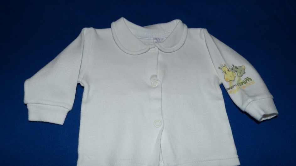 Stav produktu: Použitý produkt Je výrobek v záruce: ne Text inzerátu: dětský kabátek bílé barvy se zapínáním na patentky, na rukávku je žirafa, vel.56