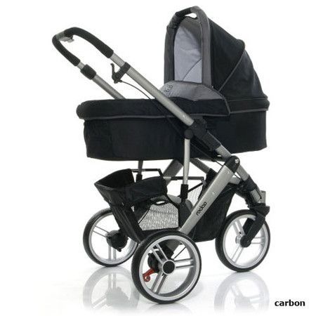 Text inzerátu: Prodám kombinovaný tříkolový kočárek ,,ABC DESING RODEO,, Hluboká korba+sporťák+autosedačka+nánožník+modrý zimní fusak+adaptéry na autosedačku+taška+deštník (vše dokupováno zvlášť). Sportovní kočárek lze nasadit na konstrukci v obou směrech jízdy.Hluboká korbička má bílý vnitřek.Barva kočárku je šedo-černá.Pod kočárkem je velký košík.Odlehčená konstrukce umožňuje velmi snadné složení a rozložení kočárku.Složený bez zadních koleček se krásně vejde i do velmi malého auta.Kočárek je čistý, v dobrém stavu.Po 1 dítěti, používaný necelé dva roky.Na kolečkách je vidět normální ojetí a pěnová rukojeť byla po mírném prasknutí opravena.