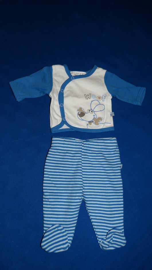 Stav produktu: Použitý produkt Je výrobek v záruce: ne Text inzerátu: Dětská souprava na spaní se zapínáním na patentky vel.46, barva modro-bílá