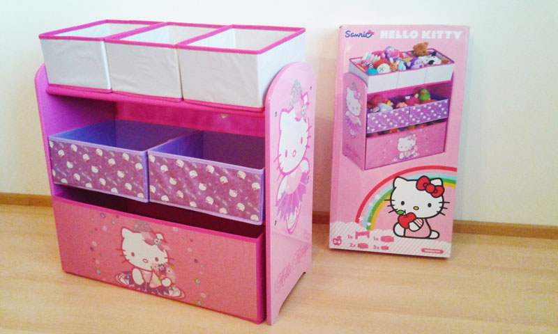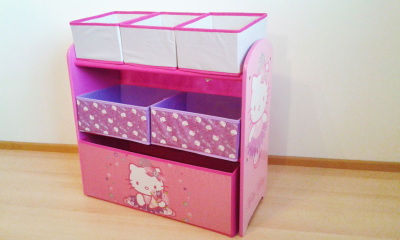 Text inzerátu: Prodám nový dětský regál na hračky s krásným motivem kočičky Hello Kitty. Tuhle oblíbenou kočičku si vaše děti zamilují. Dětský regálek je velice praktickým doplňkem do každého dětského pokojíčku. Regál má 6 různě velkých úložných látkových boxů. Boční části regálu jsou dřevěné s růžovým motivem Hello Kitty. Rozměry regálu: 63,5cm x 68,5cm x 30cm. Dřevěná konstrukce regálu zaručuje bezpečné používání po dlouhá léta. Poštovné zdarma. Možný osobní odběr na Praze 10 – Strašnice. Zboží je nové, zabalené v krabici. Nabízím i jiné motivy a barvy pro kluky i holčičky.