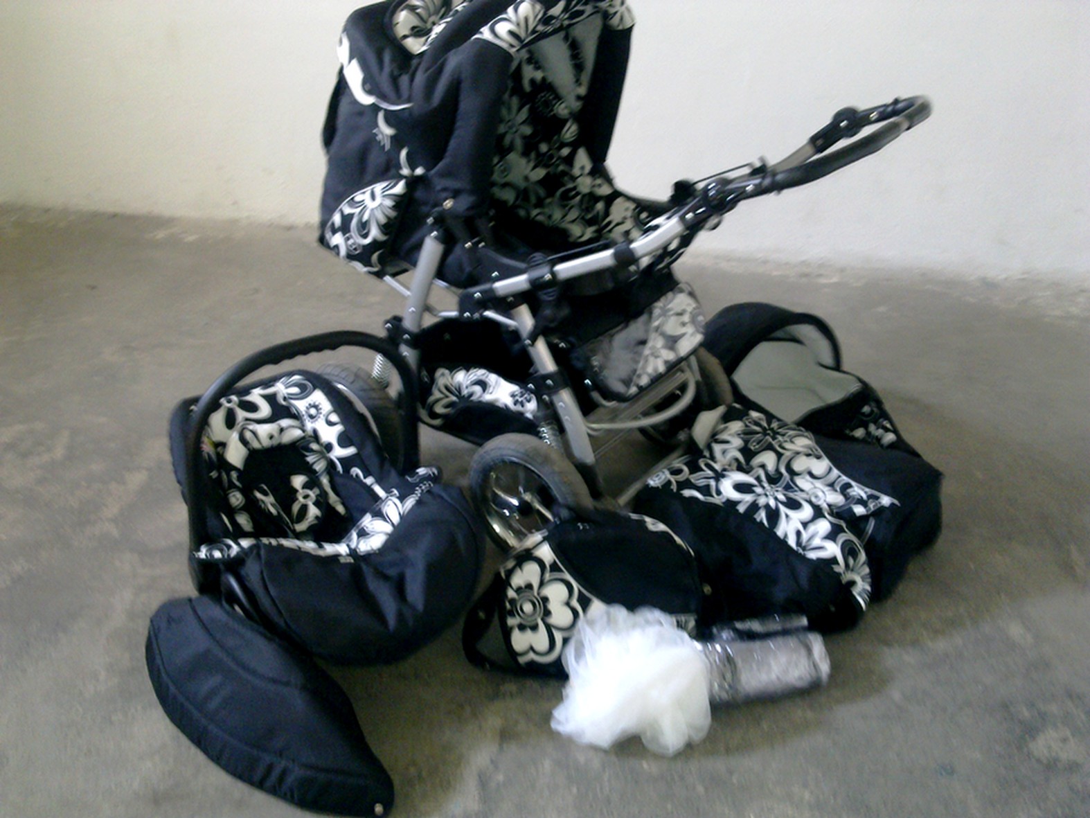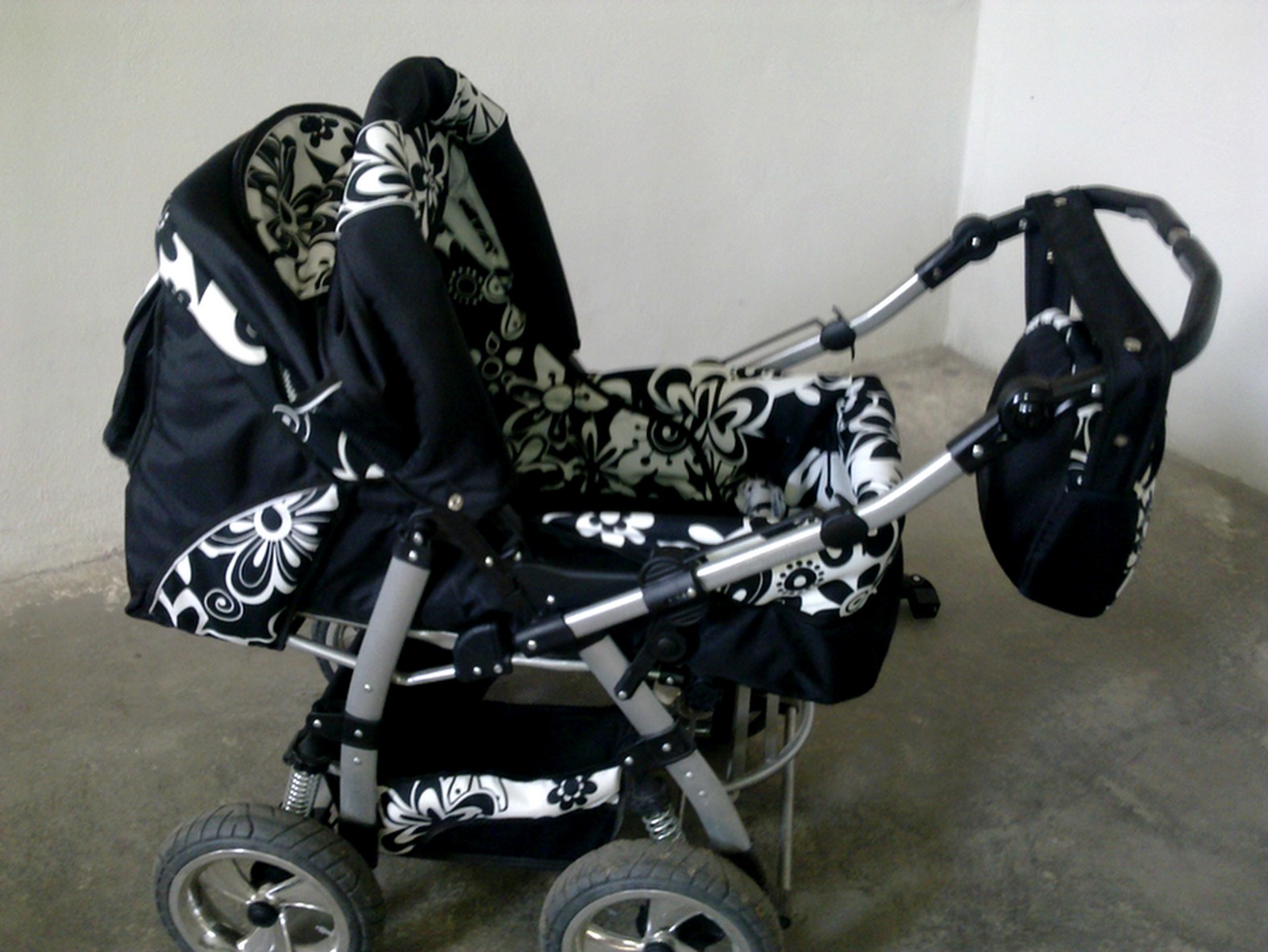 Stav produktu: zánovní/ Text inzerátu:  Kočárek AKJAX – nadstandardní výbava Prodám kombinovaný multifunkční kočárek s příslušenstvím(foto 1a, 1b), kupovaný nový, používanýcca půl roku, po jednom dítěti. Vše je plně funkční, nepoškozené, prakticky bez známek používání, některé příslušenství jsme za tu krátkou dobu ani nepoužili. - podvozek se 4 nafuk.koly na ložiscích, odpružení - přehazovací výškově nastavitelná rukojeť(foto 2 a 3) - přední a zadní brzda - velký odepínací koš na nákupy s vyztuženým dnem - velká kapsa na boudičce, dvě malé postranní kapsy(foto 4,5 a 6) - další kapsa na nánožníku(foto 7) - odepínací boudička - větrací okénko se síťkou - polohování zad do úplného sedu - polohování nožiček s omyvatelnou fólií - 5ti bodové bezpeč.pásy + pás mezi nožičky připnutý k madlu - snadná manipulace i skládání(foto 24) - Rozměry: složený bez kol 86 x 60 x 35 cm Taška na miminko 70 x 35 cm Šířka kočárku 60 cm Rozměry lůžka 85 x 37 cm Rozsah nastavení výšky rukojeti od 74cm do 114 cm Hluboká korbička má nástavec na prodloužení(foto 8), když už se mimi nevejde do tašky. Tento nástavec slouží zároveň jako fixace tašky na mimi(foto 9). Část boudičky lze odepnout -větrání(foto 10 a 11), je tam i malé okénko s větrací síťkou(foto 12 a 13) Taška na mimi je po celé délce na zip, má odepínací stříšku(foto 14), rozměry: š.35cm, d.75cm, v.20cm Fusak(foto 15 a 16) – velký, teplý, ale pohodlně se vejde i do tašky na mimi, otvory pro bezpečnostní pásy, možnost stažení kolem hlavy, na zadní straně je upevňovací popruh k fixaci na opěrku kočárku, rozměry: d.90cm, š.40cm Sportovní verze lze doplnit madlem před mimi s omyvatelným povrchem nebo pultíkem. Pro větší dítě má pohodlnou opěrku na nožičky, polohování zad i nožiček Autosedačka(vajíčko) – (foto17 a 18)odnímatelná stříška, nánožník, vložka pro nejmenší mimi chránící hlavičku, lze upevnit na podvozek kočárku Další příslušenství(foto 19) – slunečník, pláštěnka, moskytiéra, nánožník s kapsou, který je na zip pro pohodlný přístup k mimi, jde zvětšit rozepnutím, aby lépe pasoval na sportovní verzi s větším dítkem, taška na rukojeť- tady je jediná vada – na zadní straně je malé místo lehce zežmolkovatělé od kontaktu se suchým zipem po otevření kapsy na nánožníku, není to vidět, ničemu to nevadí, (foto 20) Zdarma – přidám celou sadu kol na výměnu(jsou tedy 4 kola nafukovací a další 4kola nenafukovací, plná)foto 21. Využití v zimě či na jiný terén, při píchnutí atd. - přebalovací podložka(zn.Bamboolík) - dva látkové sáčky na pleny či svačinku s vnitřní pogumovanou vrstvou((zn.Bamboolik)foto 22 a 23 - stará pláštěnka na přikrytí odstaveného kočárku Veškeré příslušenství je v designu kočárku(kombinace černé s bíločernými květy) S kočárkem jsem byla maximálně spokojená, vleze se do něj pohodlně i ležící starší dítě s fusakem. Projede jakýkoli terén. V případě zájmu a rychlého jednání možná sleva. Cenu stanovuji vzhledem malému opotřebení a nadstandartnímu vybavení. Další foto zašlu e-mailem.