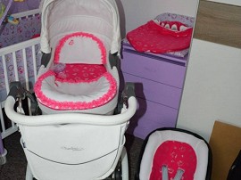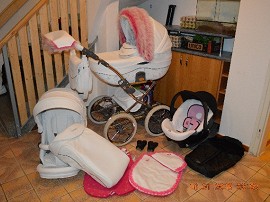 Text inzerátu: Opravdu krásný kočárek hluboká a sportovní nástavba ta nebyla použitá vůbec, a kvalitní bezpečná autosedačka s adaptéry. pláštěnka, kšíry, síťka, jarní podzimní fusak, zimní fusak, peřinky do kočárku a prostěradlo ve stejné barvě rukávník s kožešinou a kožešinový límec na boudičku, potah na autosedačku a zmenšující vložka vše šité na zakázku nádherně ladí. pořizovací cena za vše přes 20000,- teď 13000,-