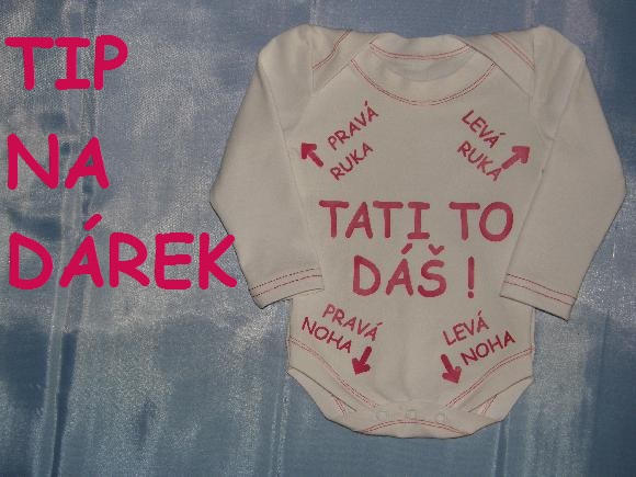 nápisem v barvě černé, tmavě růžové a modré. Nové zboží, česká výroba! Materiál 95% bavlna, 5% spandex. Vel. 50-68 cena 259,-. Vel. 74-92 cena 279,- . Doba dodání 3-5 dnů. Tel. 736 13 18 74