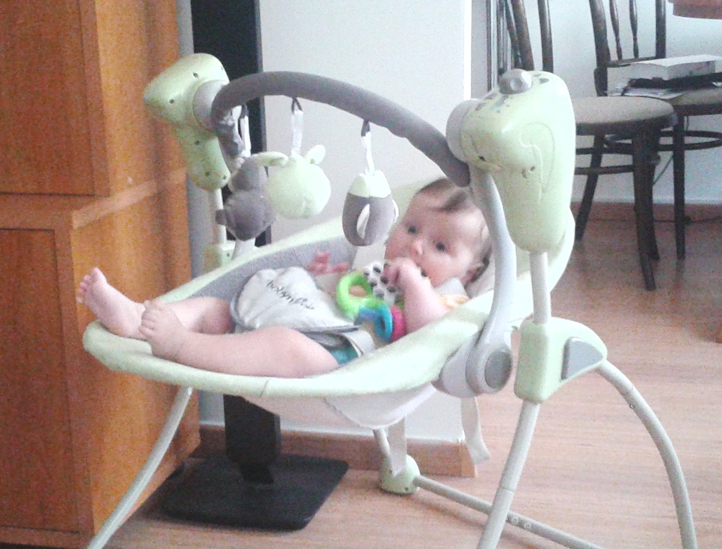 Lehátko po jednom dítěti, využíváno cca pul roku. V dobrém stavu. Hraje, houpe po nastavení samo.