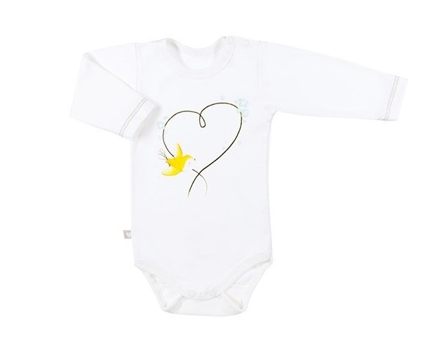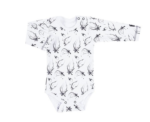 Bílé bodýčko s černými peříčky a dlouhým rukávem, které bude slušet nejen holčičkám, ale také našim chlapečkům.