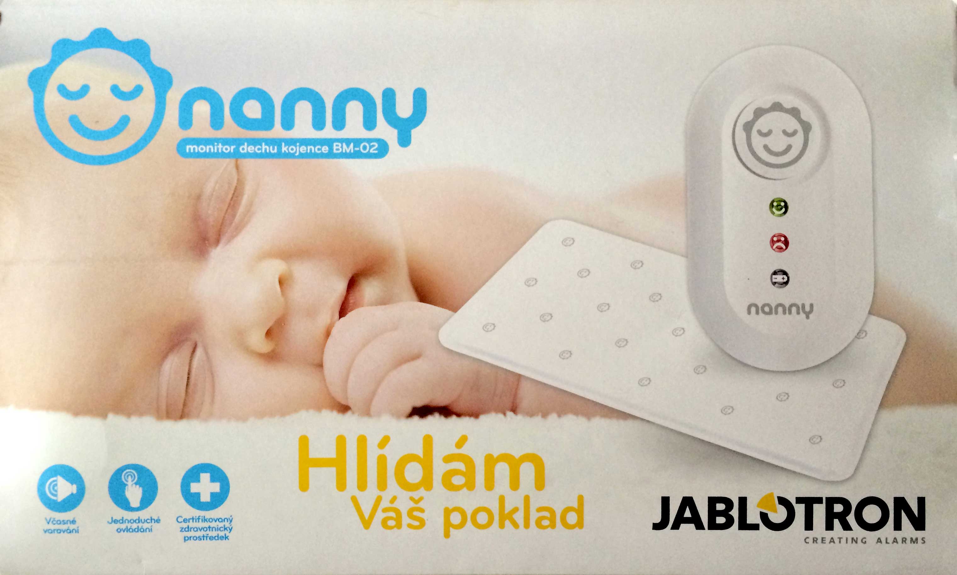Stav produktu: Nový produkt Je výrobek v záruce: ano (do 25.10.2015) Text inzerátu: Monitor dechu kojence BM-02 od firmy Jablotron. Úplně nový, nepoužitý, nerozbalený.