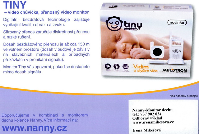 Text inzerátu: Nanny monitor dechu kojence BM-02, od firmy Jablotron, mimořádně kvalitní výrobek, zcela nový, nerozbalený pro ty, co chtějí mít jistotu, že Vaše dítě bude ochráněno z hlediska dechu stoprocentně.