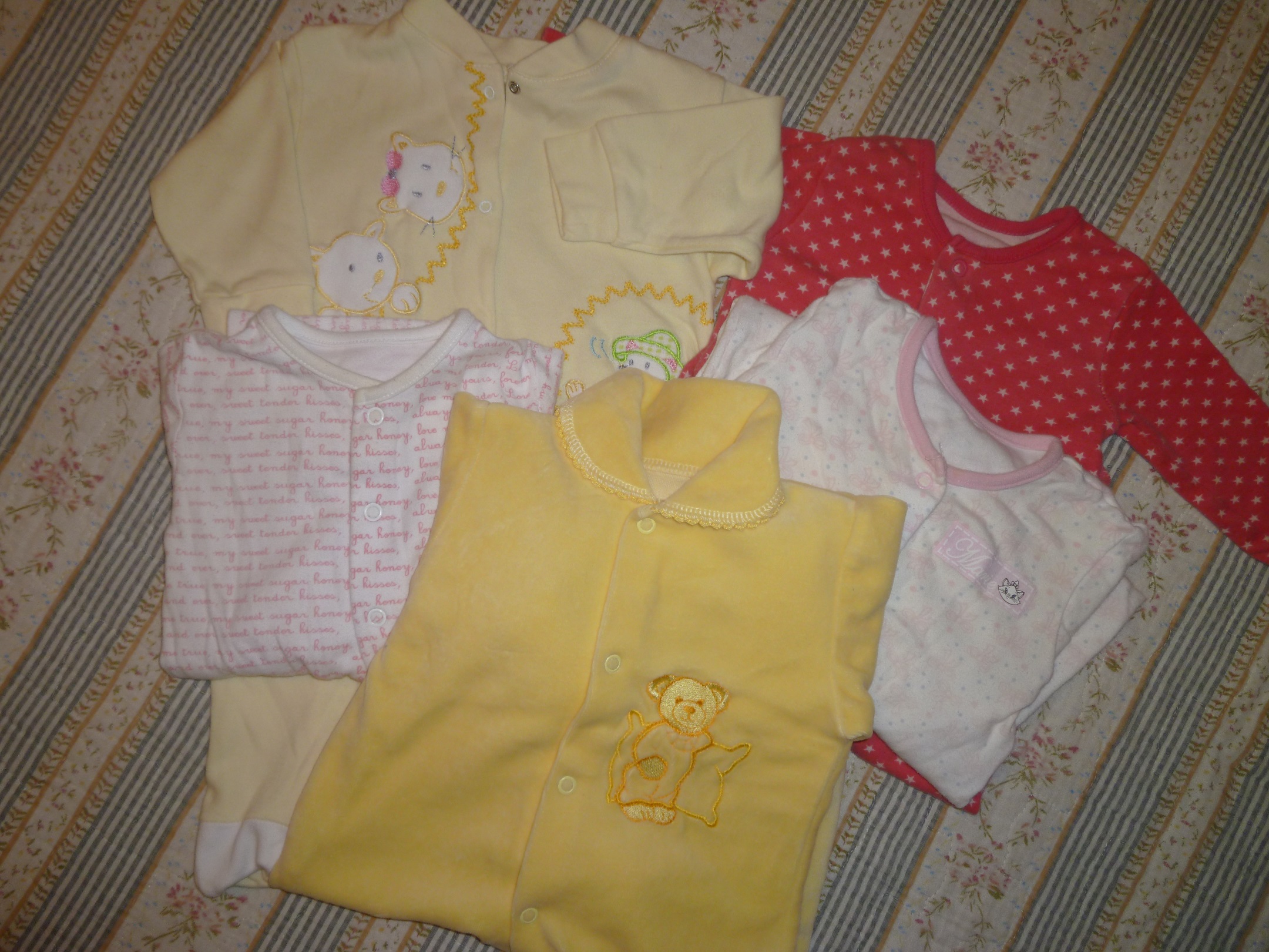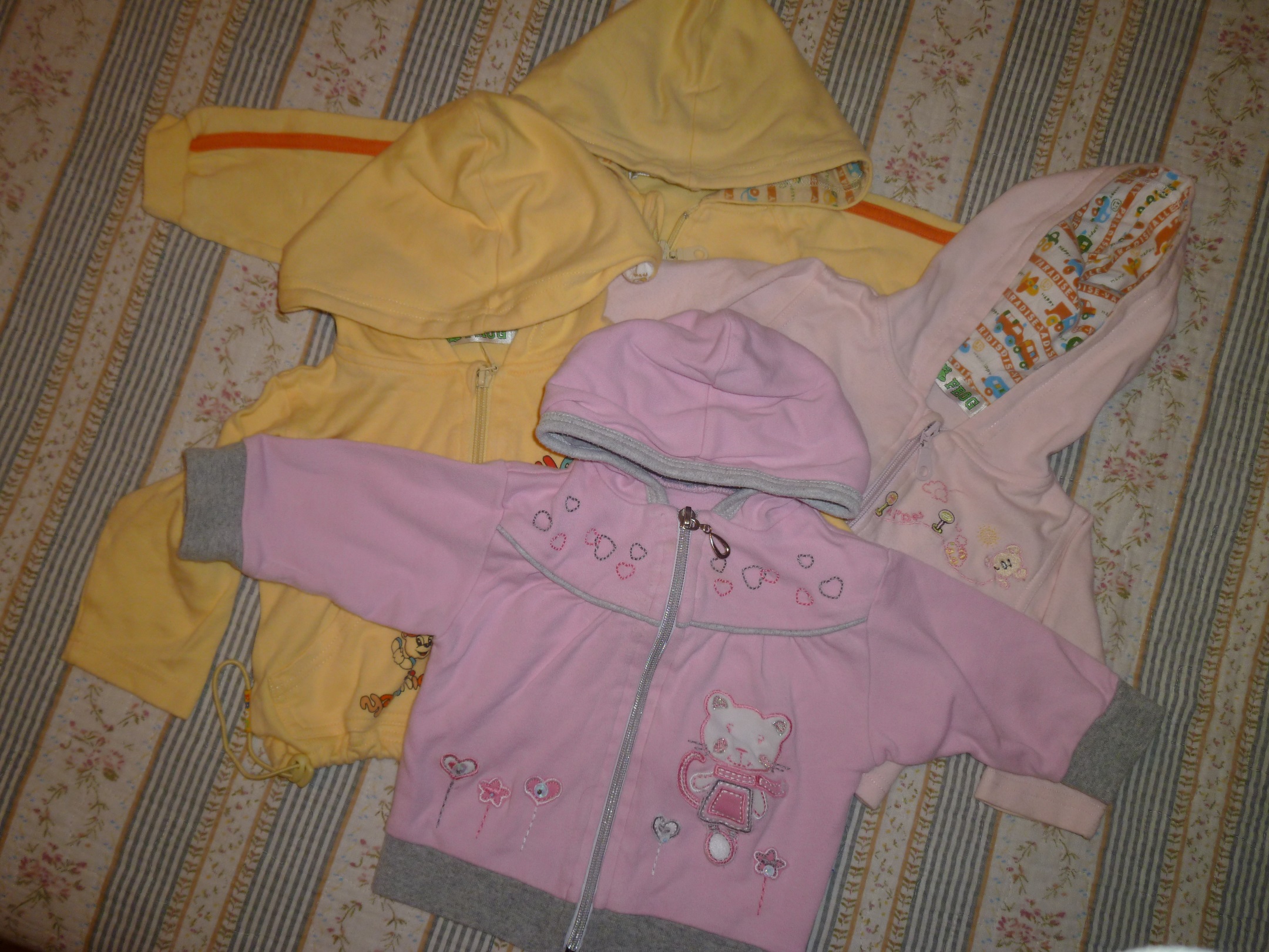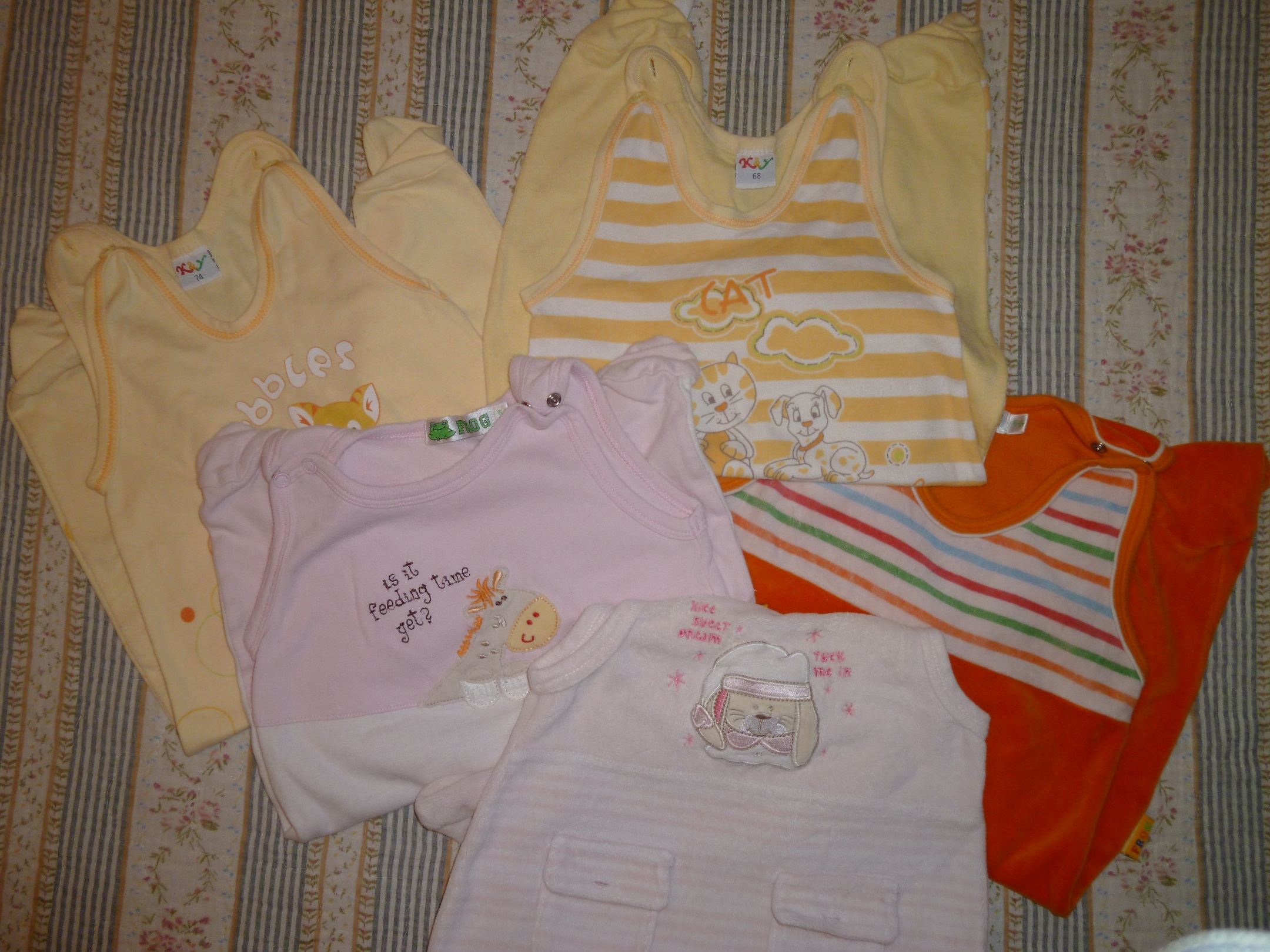 Prodám 22 ks oblečení pro holčičku (4x mikina, 7x dupačky, 5x overal, 3x body, 2x teplá bunda, osuška). Velikost 62 - 80. Oblečení je použité.Cena za komplet je 650kč ( + poštovné). Dárek - láhev pro miminko na mléko zn. Avent.