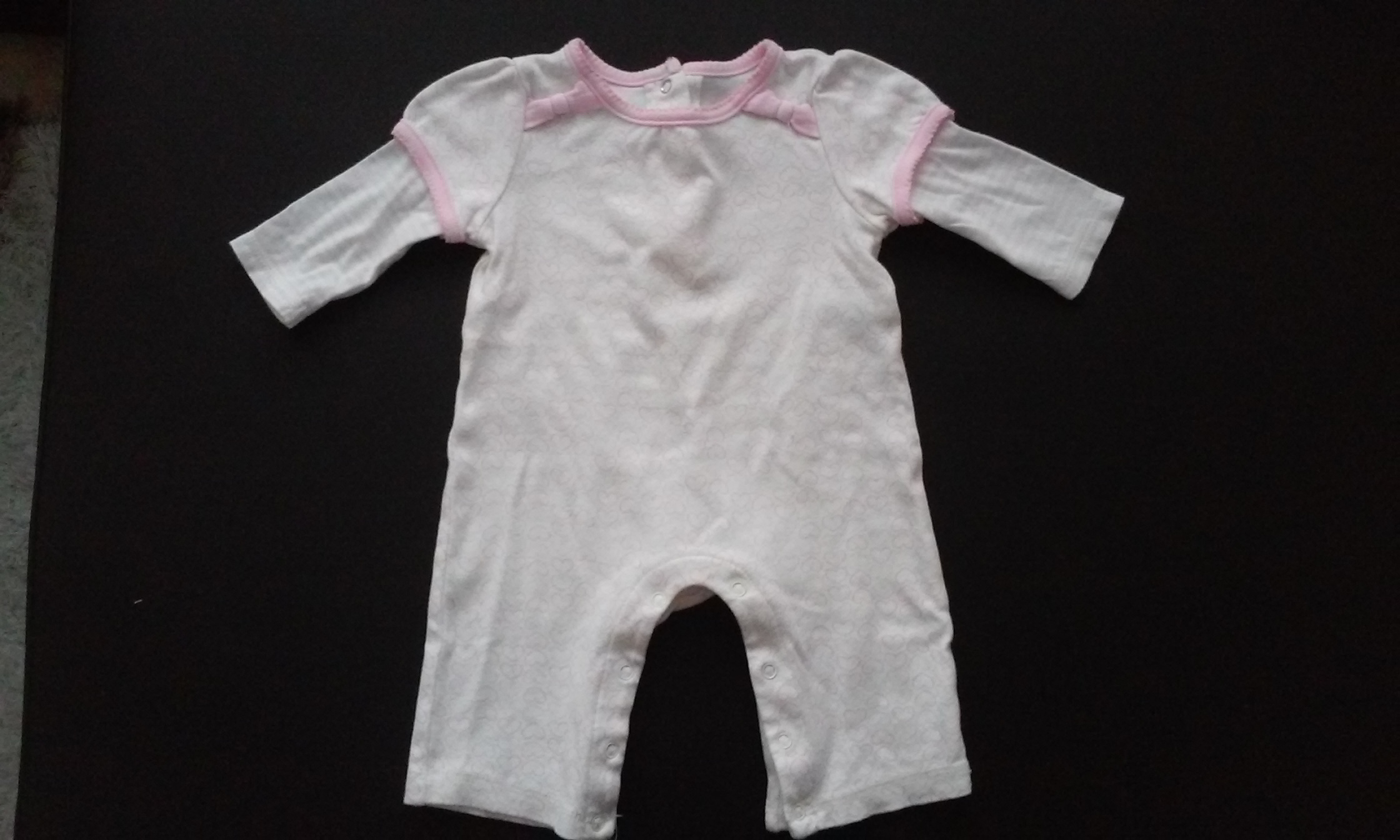 Velmi krásný, 1× nošený overal s dlouhým rukávem a bez tlapek v růžové barvě. Vhodný pro holčičky ve věku 0–3 měsíce.