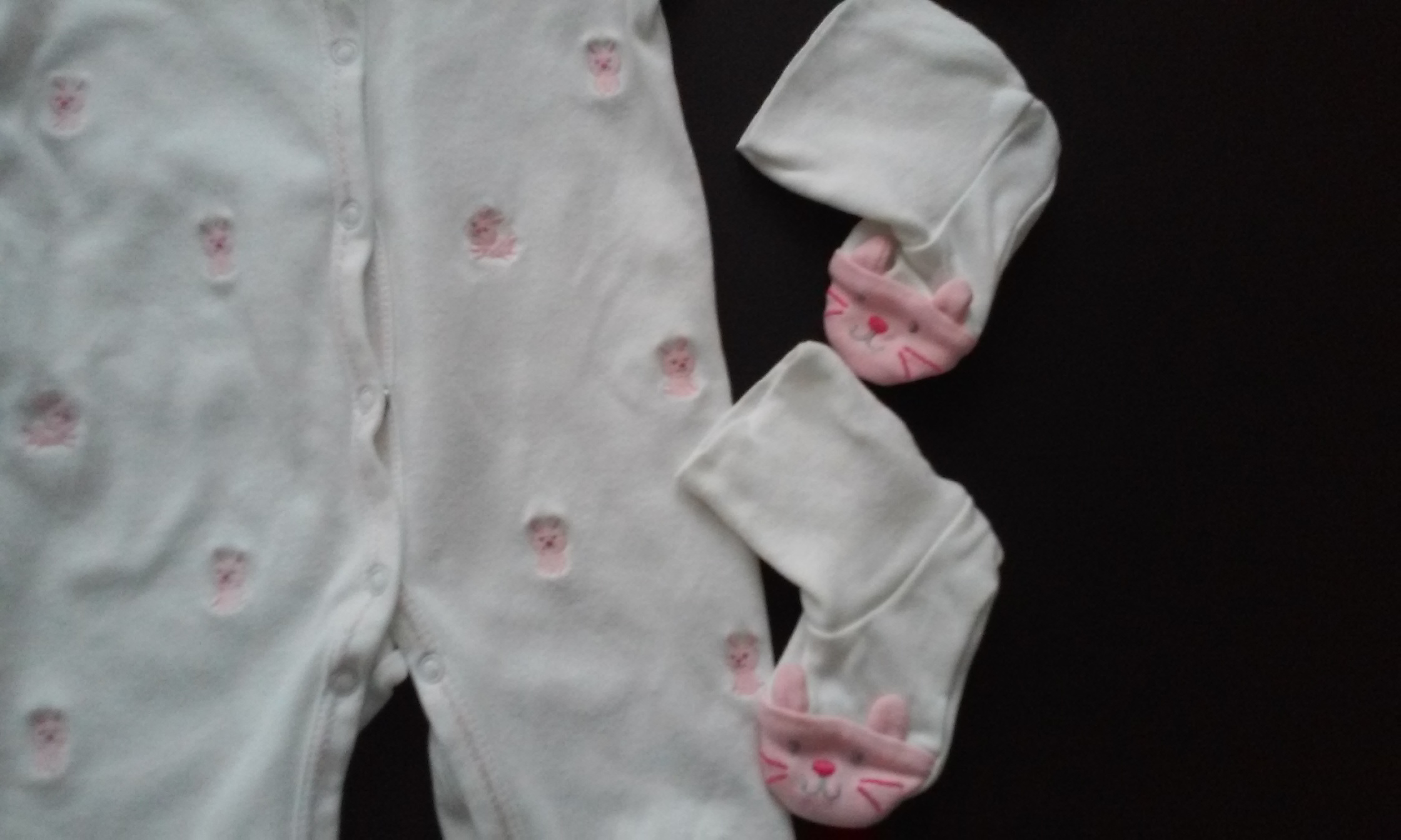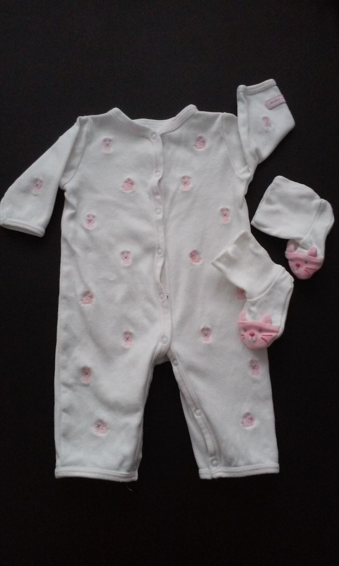 Overal je bez tlapek s růžovými obrázky zajíčků a jsou k němu i ponožky viz foto. Velmi zachovalý stav.