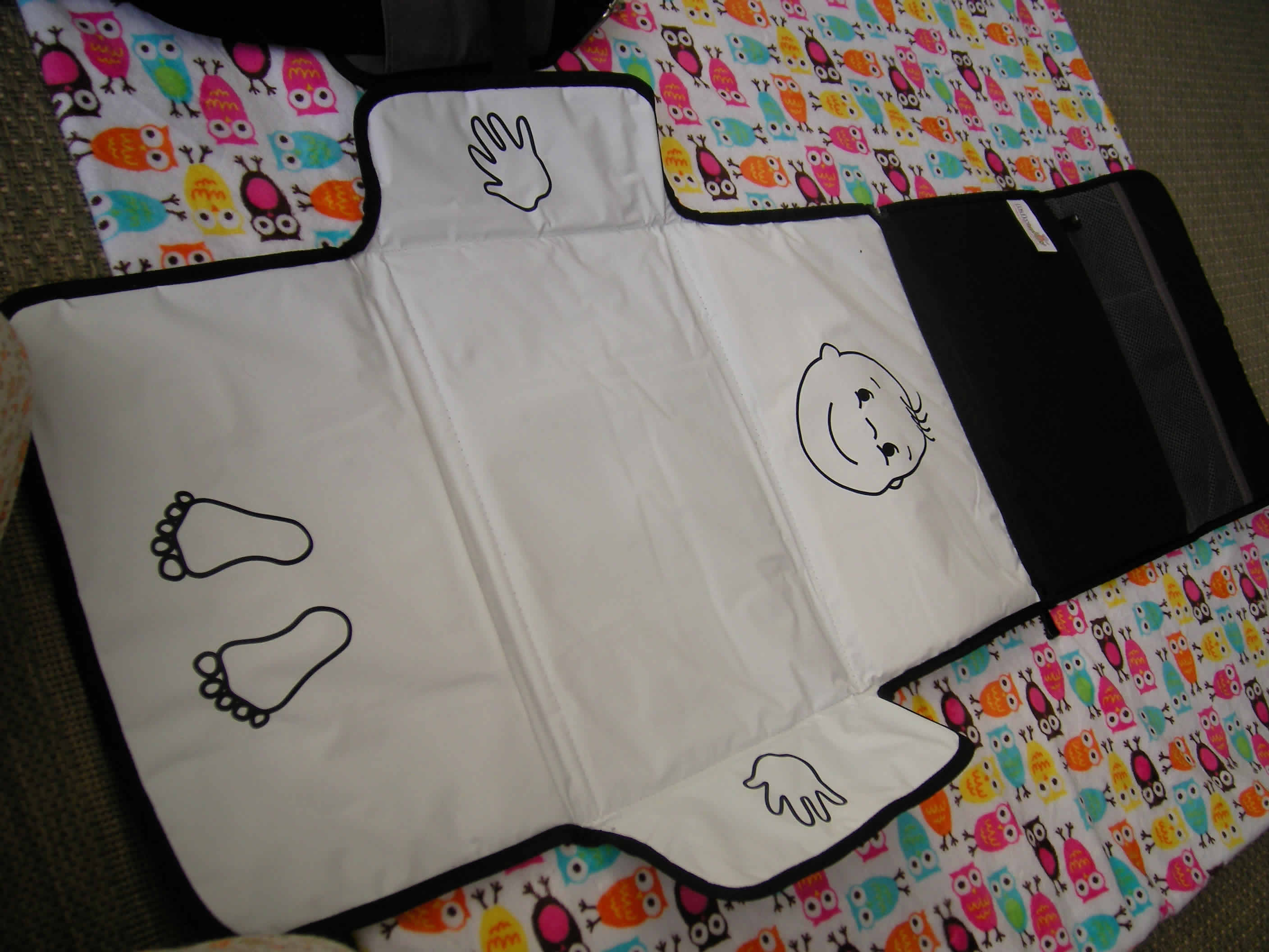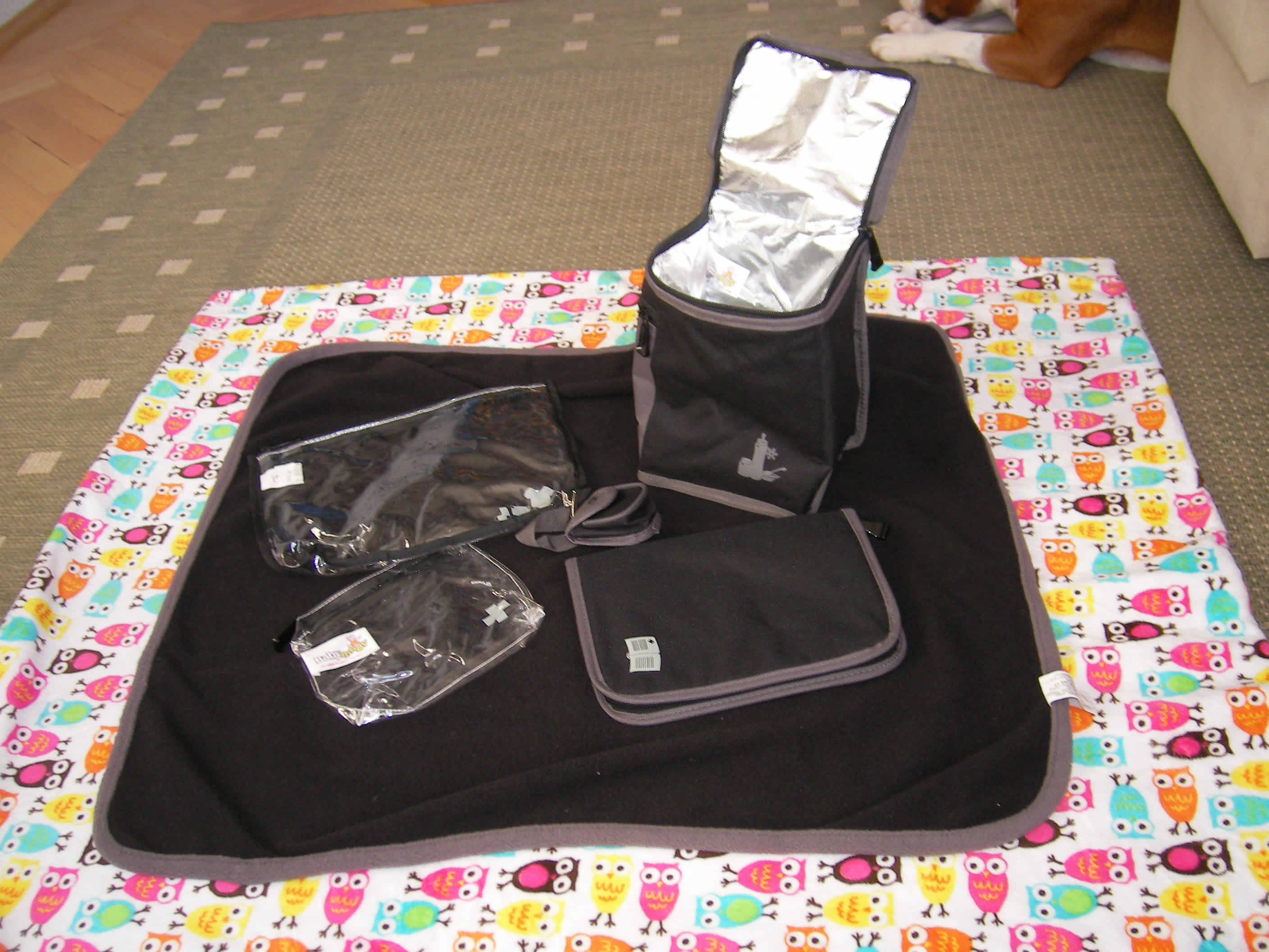Velká, prostorná přebalovací taška vybavená izotermickou taškou, omyvatelnou kapsičkou na dudlík, přebalovací podložkou, fleecovou dekou, sáčkem na špinavé plenky, taštičkou na léky a uzavíratelným pouzdrem např. na zdravotní knížku. Vně i uvnitř má spoustu odkládacích kapes. Na tašce je připevněn nastavitelný popruh přes rameno, který lze využít i pro izotermickou tašku nebo přebalovací tašku. Tašku lze pomocí úchytů nosit i v ruce, příp. pomocí pásků připevnit na rukojeť kočárku. Omyvatelná, s vyztuženým dnem. Rozměr tašky: šířka 42,5cm x výška 33cm x hloubka 23cm. Rozměr přebalovací podložky: 67cm x 55cm. Z přebalovací podložky lze oddělit menší přebalovací tašku, kterou lze využít samostatně. Moderní design! Materiál: 100% polyester. Veškeré příslušenství v barvě tašky! Černo-šedá.
