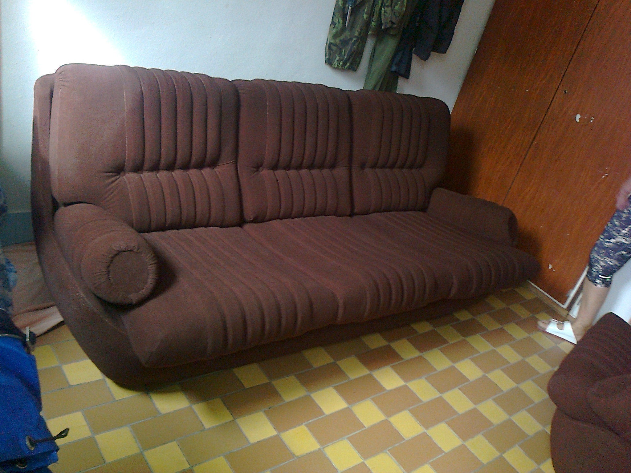 - Text inzerátu: Sedací souprava hnědé barvy se dvěma křesly.