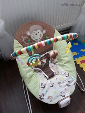 Text inzerátu: Prodám vibrační lehátko značky Bright Starts - Monkey Business, po jednom dítěti. Bez poškození, plně funkční.