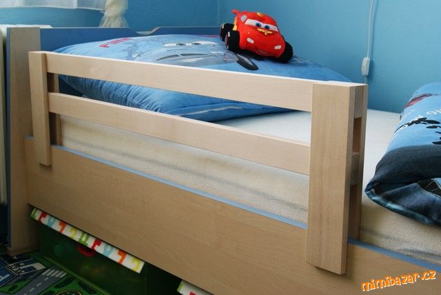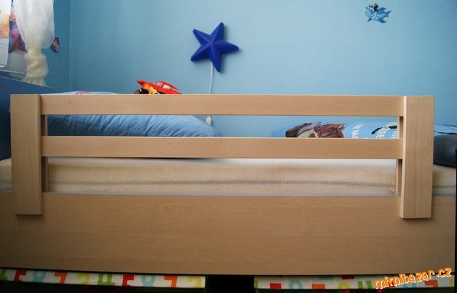 Zábrana na dětskou postel z masivu, materiál broušený světlý buk, jednoduchá montáž, nasazovací, bez vrtání do postele...